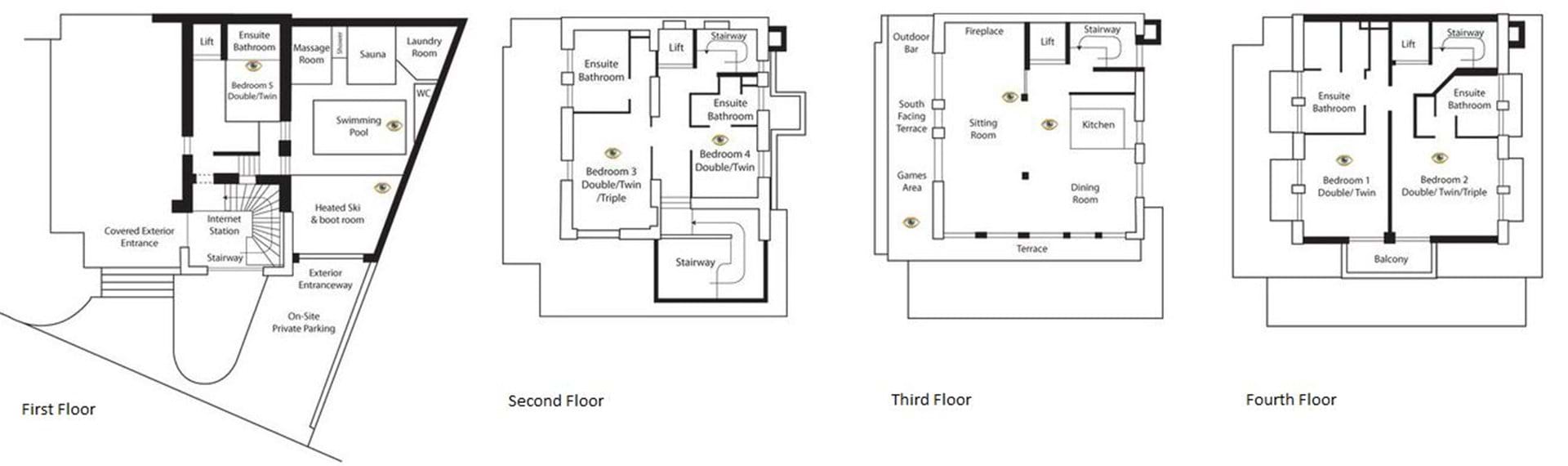 On the ground floor there is a leisure room featuring a swim spa, sauna, shower and massage room. The chalet is surrounded by an extensive sun terrace with outdoor bar, perfect for a spot of après ski.