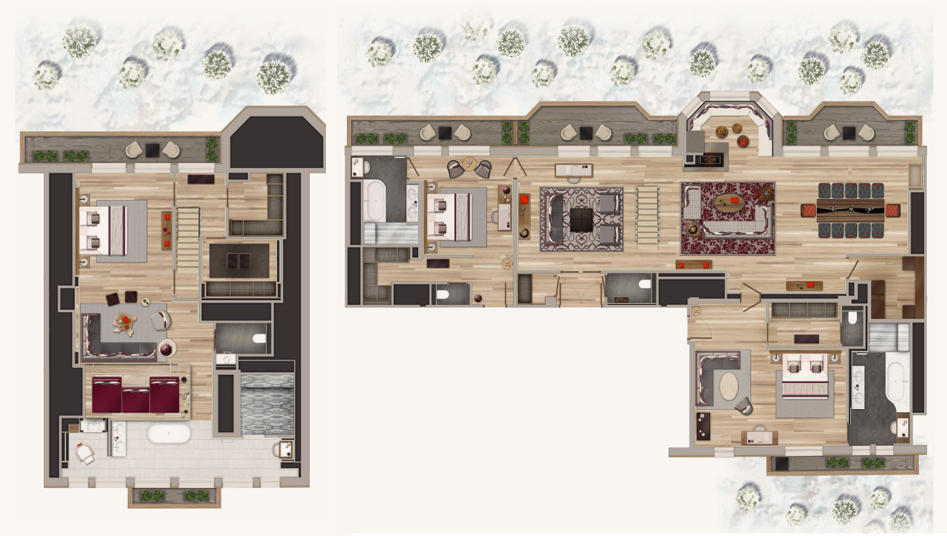 Elevate your luxury alpine escape with L’Appartement Les Neiges, an exclusive private penthouse at Fouquet’s Courchevel. This exceptional residence spans 310 sqm over two floors and comfortably hosts up to nine guests, blending refined design with panoramic views of the snowy peaks and Courchevel 1850 village.