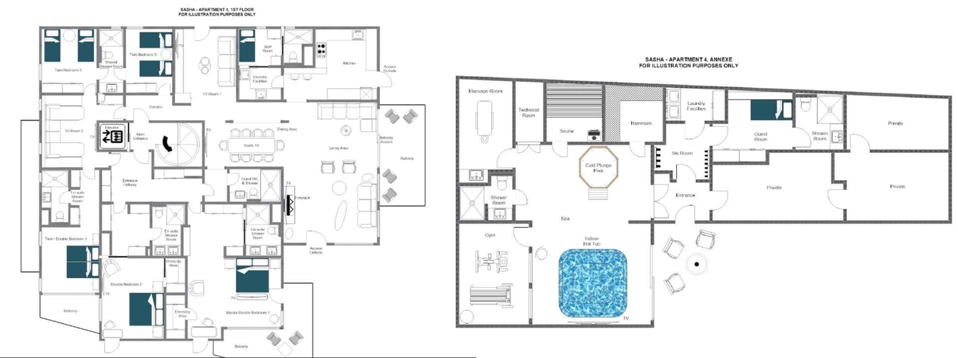 Staying in Sasha Apartment 4 in Courchevel 1850 feels like stepping into a beautifully designed alpine retreat where everything has been carefully thought through. From the moment you arrive, the space is both spacious and welcoming, with a layout that works brilliantly for groups. The apartment sleeps up to 10 guests across five bedrooms, and we love how the sleeping areas are split into two wings, giving everyone a bit of privacy while still feeling connected.