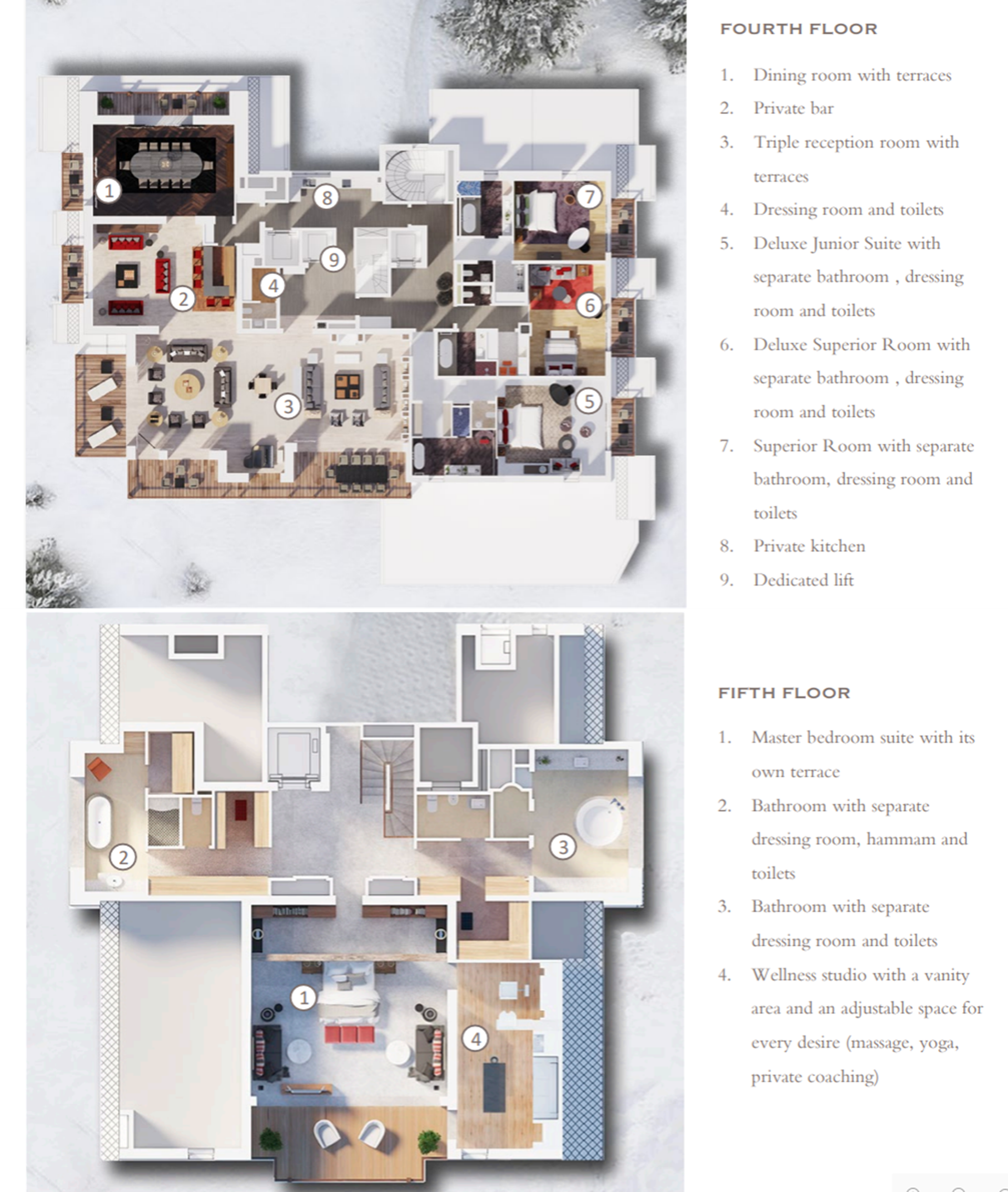 Set high above the slopes of Courchevel 1850, The Apartment at Cheval Blanc is one of the Alps’ most exclusive private residences within the Hotel Cheval Blanc. Occupying the top two floors of the Maison, this exceptional four-bedroom penthouse spans more than 650 sqm and offers breathtaking panoramic views.