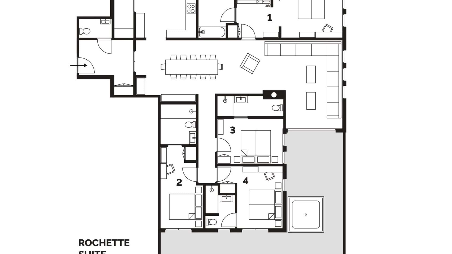 One standout suite, the Rochette Suite, comfortably sleeps eight to ten guests. It features two bedrooms with double or twin beds and en suite shower rooms, one bedroom with a double bed and en suite shower room, and a family suite with double or twin beds, an en suite bathroom, and a separate curtained area with full-sized bunk beds. The suite's spacious and beautifully designed interiors showcase large windows that frame panoramic views of the piste and mountain peaks, extending all the way to Mont Blanc. With a private hot tub, cosy sofas, an eco-fireplace, and thoughtful touches like bedside USB-C ports and warm gloves ready each morning, every detail is crafted to provide luxury and comfort for the modern skier.