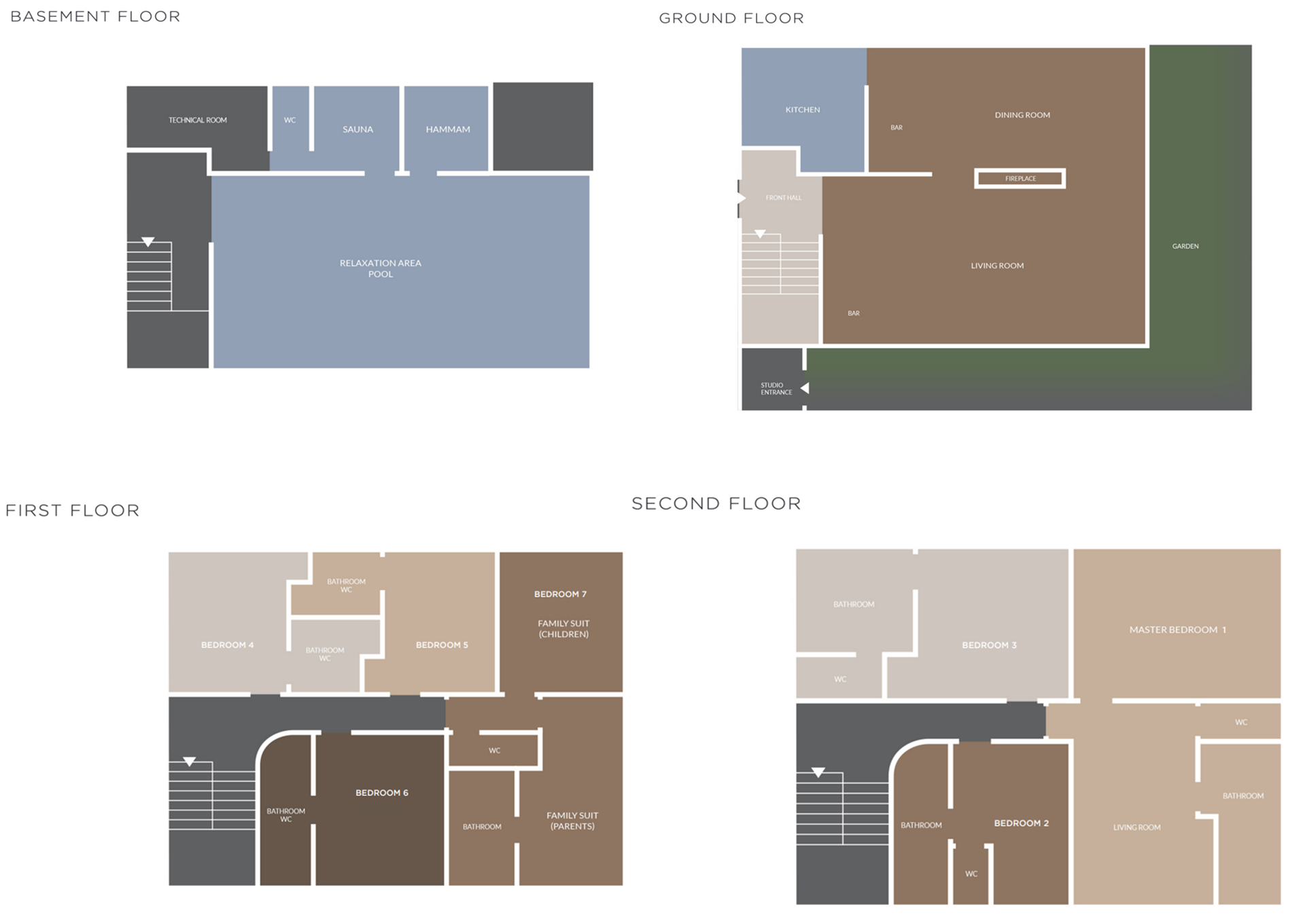 Wellness and recreation take center stage on the lower level, with an indoor heated pool, hammam, sauna, and a cinematic movie lounge with a video projector for immersive entertainment. Every corner is designed to enhance relaxation, privacy, and indulgence.