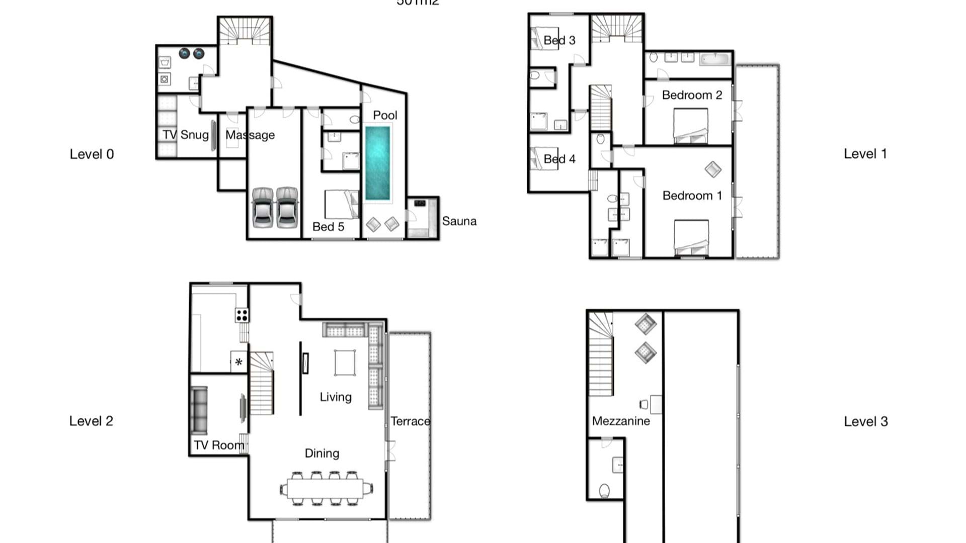The main sleeping floor is in the middle of the chalet with four lovely en suite bedrooms. Two of these have direct access to the terrace, opening on to the private garden. The fifth bedroom is located on the floor below along with the fantastic spa that completes this luxury ski chalet. The spa facilities include a large indoor swimming pool, sauna, shower and separate massage room. The ski room with boot warmers is also found on this floor.