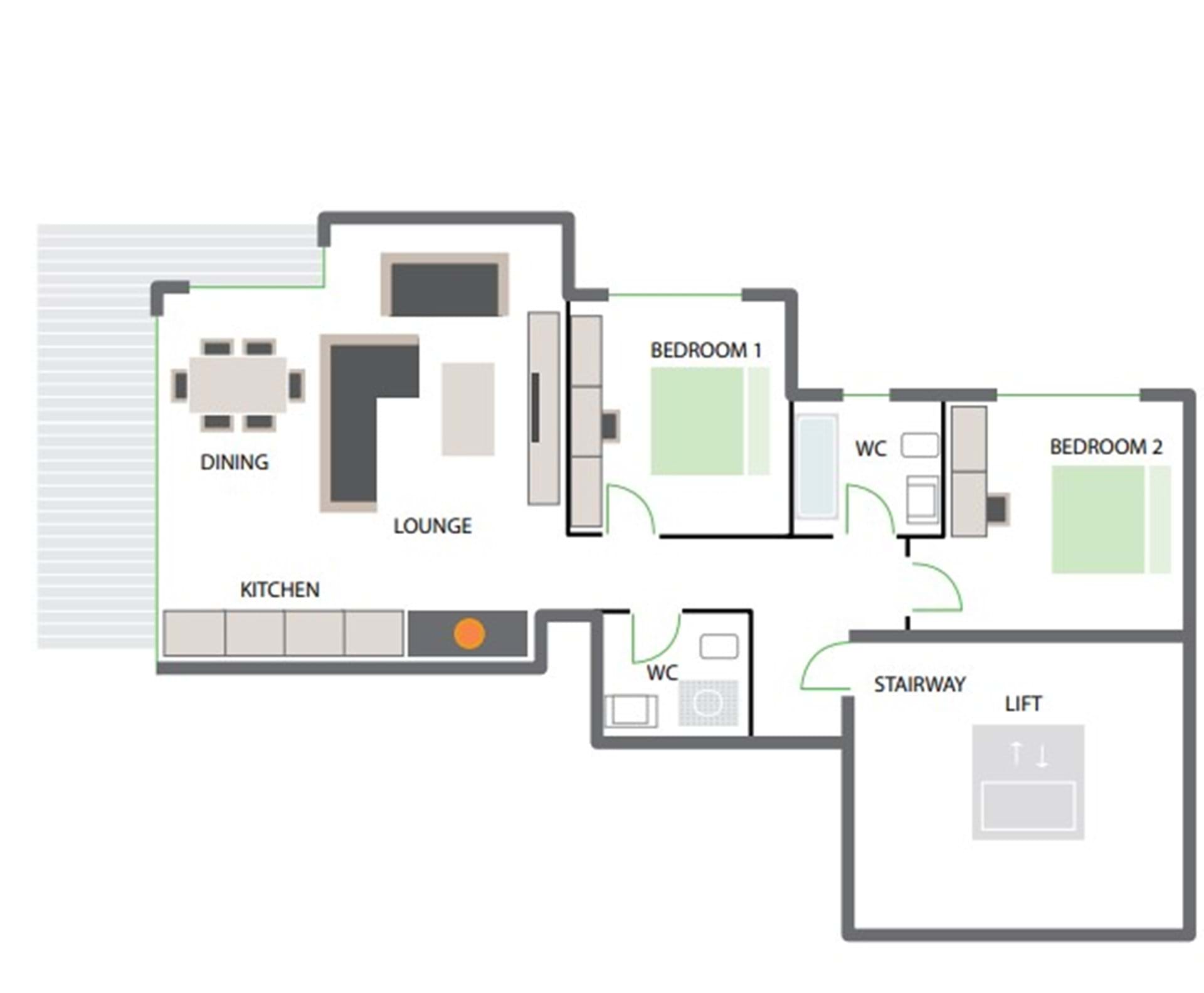 There are two double bedrooms, each with TV and DVD, underfloor heating and subtle lighting. The kitchen is a fully fitted Pollinger with granite work tops and ceramic hobs. The dining table can comfortably seat six and the open plan space offers stunning views of the Matterhorn. The lounge has an open fireplace and is a lovely space in which to relax and spend time with friends or family. The apartment has been luxuriously finished to cater for your every need and can be accessed by stairs or lift.